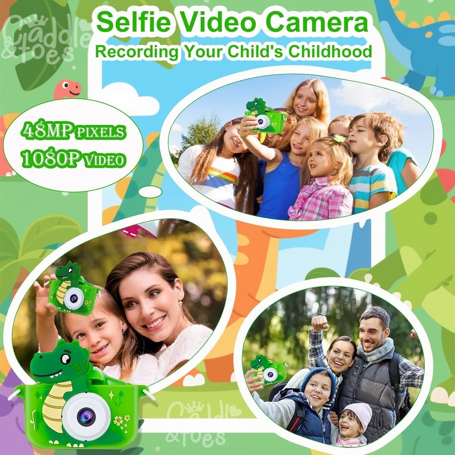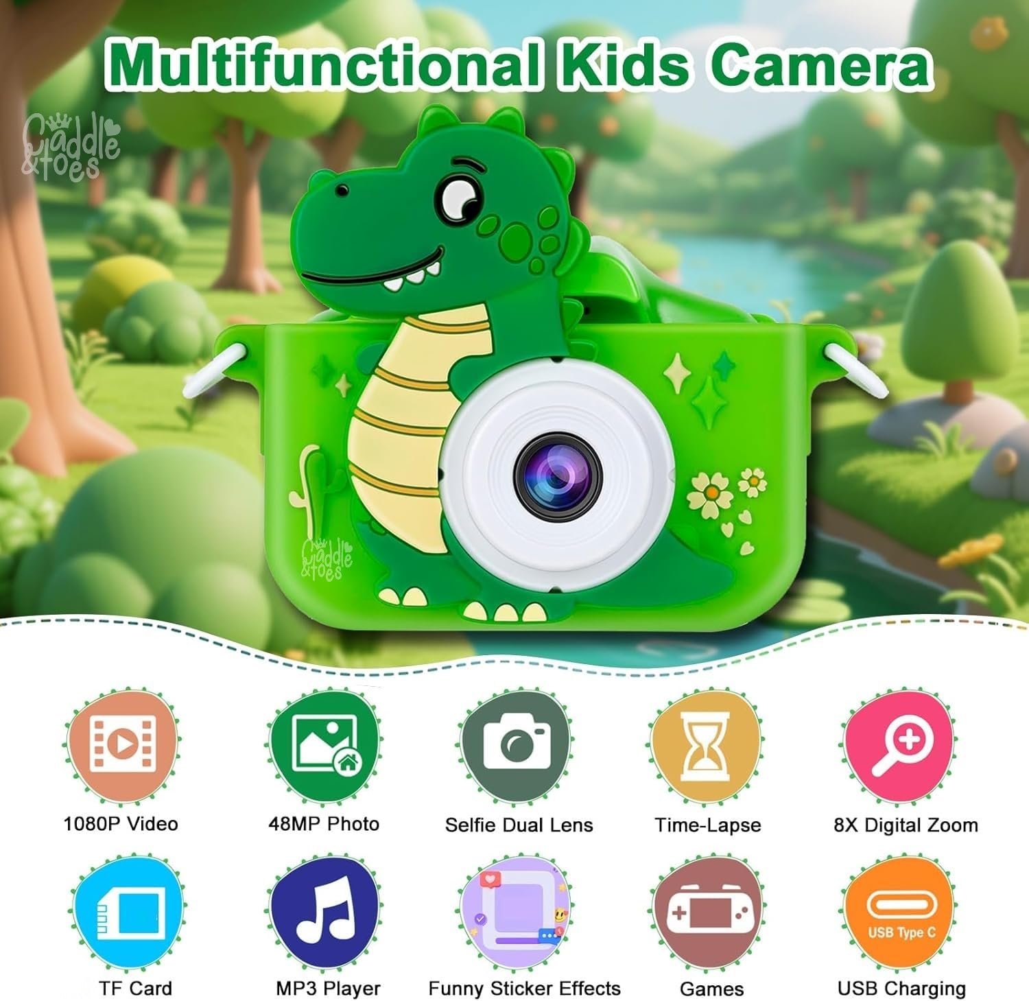 1 DUAL-Lens Camera 2 Loss-Proof Lanyard 3 Dinosuar pattern