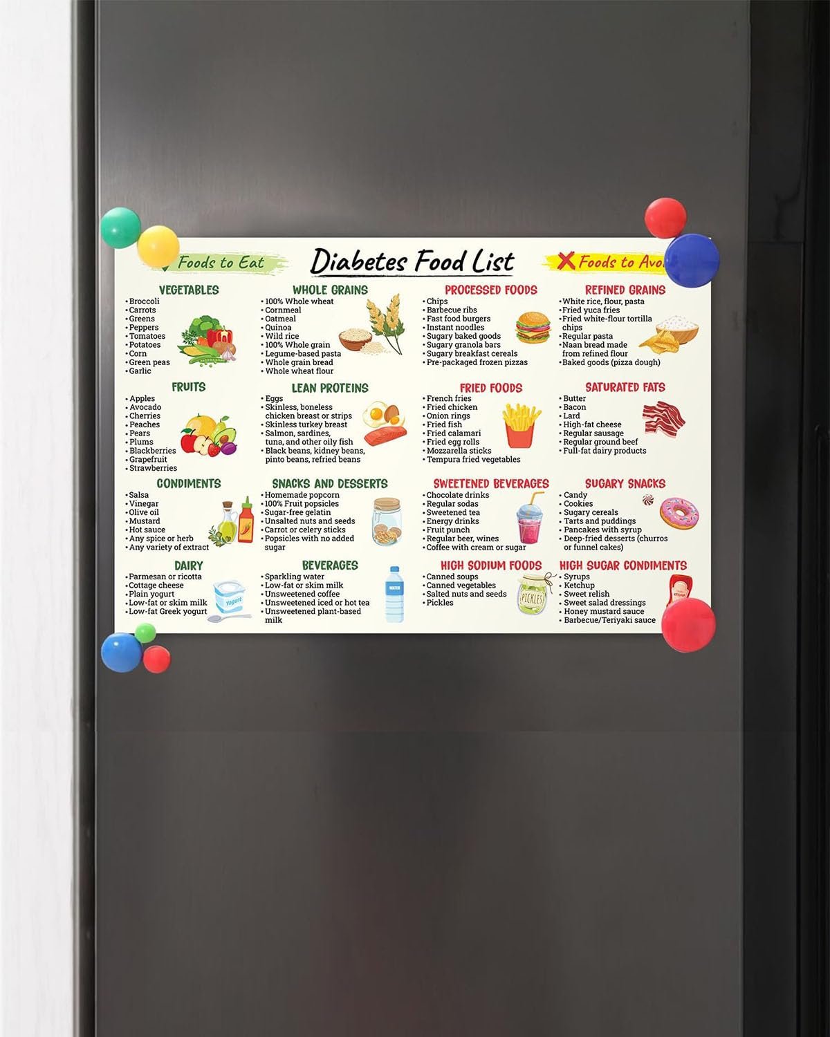 Diabetes food guide print poster, Healthy eating chart for diabetics, Meal Planner Book, Weekly Planner for Fridge, 21×30 cm Diabetes Recipe Chart for Home and Office Use Versatile Size & Design: Measuring 21×30 cm, this diabetes recipe chart is compact yet spacious enough to display your weekly meal plans; Its magnetic backing allows easy attachment to any metal surface, making it a perfect addition to your fridge or office board Durable and Easy-to-Use Material: Crafted from high-quality laminated paper, this chart is resistant to wear and tear; The smooth surface ensures effortless writing and erasing with any dry-erase marker, providing a reusable and eco-conscious solution Comprehensive Diabetes-Friendly Guide: Featuring a curated list of diabetic-friendly recipes and meal ideas, this chart helps you manage blood sugar levels effectively; It serves as a daily reminder to make healthier food choices without compromising on taste Simple and Organized Layout: The clear and structured design allows you to plan meals for the entire week at a glance; With dedicated sections for breakfast, lunch, dinner, and snacks, staying on track with your diet has never been easier Ideal for All Settings: Whether at home, in the office, or even in a classroom, this chart is a practical tool for anyone managing diabetes; This list is a thoughtful gift for friends and family. It conveys the concept of healthy living and makes the recipient feel your care and blessing. Whether it is given to elders, friends or colleagues, it can make them feel a warmth from the bottom of their hearts.