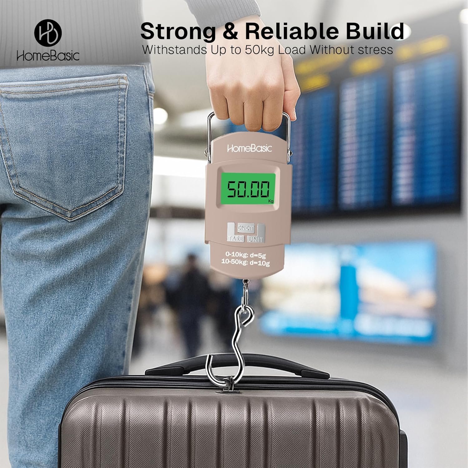 High Accuracy With 50kg Weight Capacity: Equipped with advanced sensors, this digital travel scale accurately measures from 50g to 50kg. Use it to avoid overweight baggage charges and travel stress-free. Designed to support precise weighing at home or in transit.
