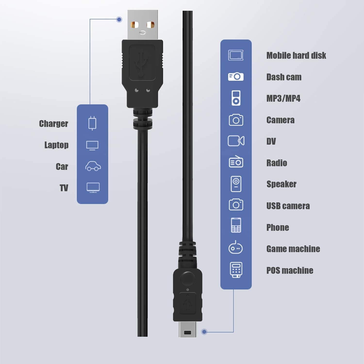 Wide Compatibility:usb 2.0 mini usb cable is compatible for Gopro HERO HD, HERO 3+, Hero4,PS3 controller Charger, Garmin Nuvi Receiver, Astro A40/50, MP3 players, HTC, Digital Cameras such as Canon PowerShot / Rebel / EOS / DSLR, Sat Navigation, Zoom Mic, Dash Cam etc and other devices with Mini b 5-Pin connector.