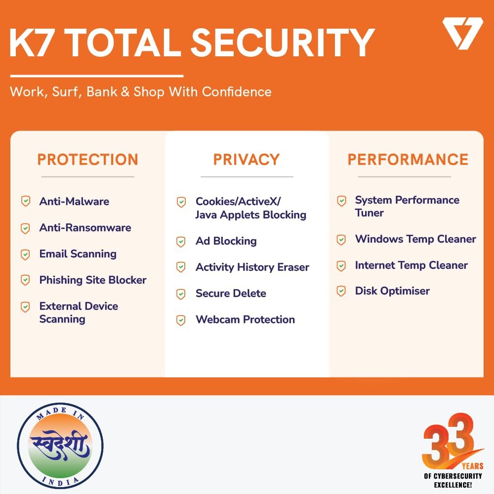 K7 Total Security Antivirus | 10 User 1 Year | Anti-Ransomware, Web Protection, Wi-Fi Security Advisor | Windows Desktop, Laptop, PC| Email Delivery in 2 hours