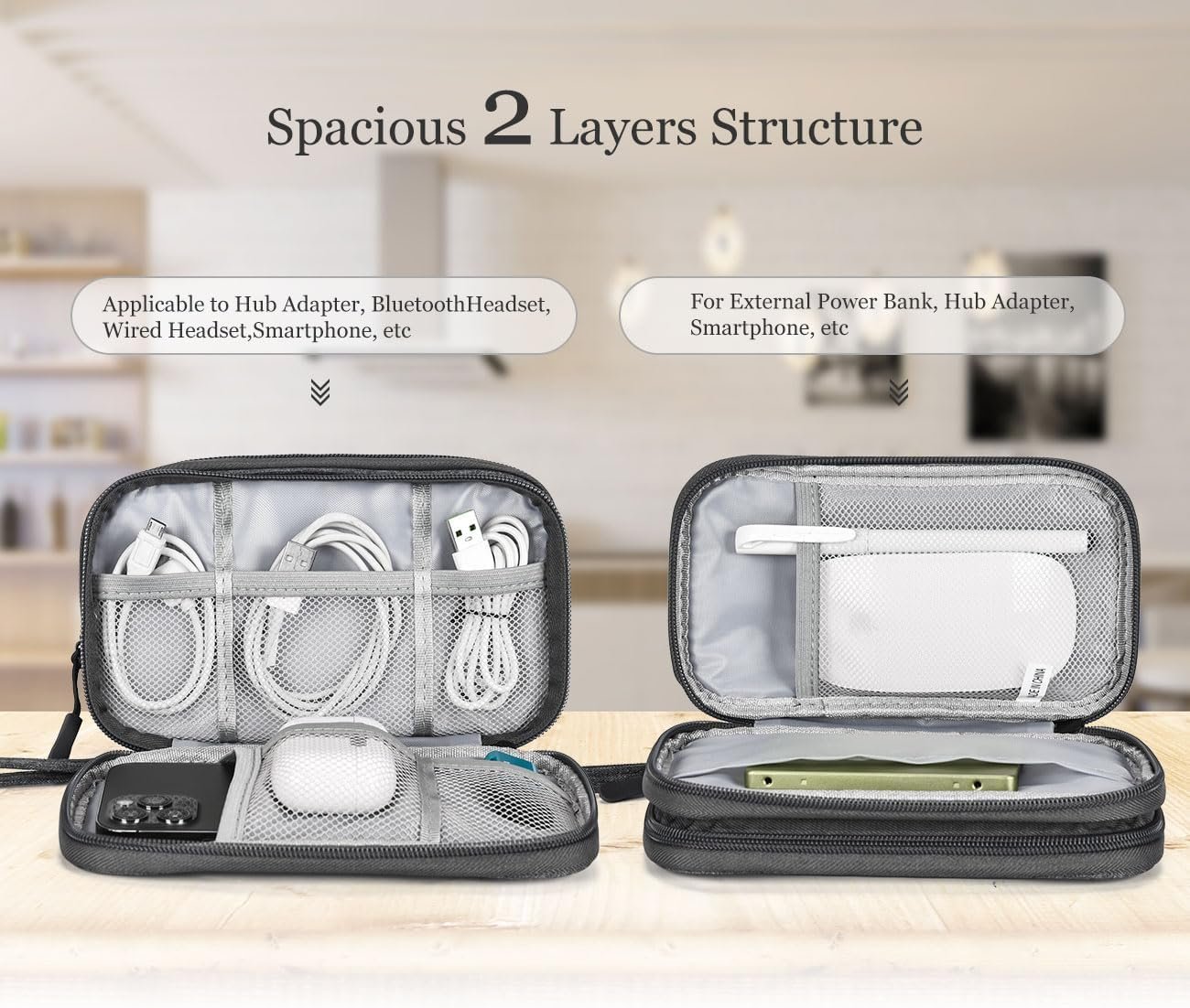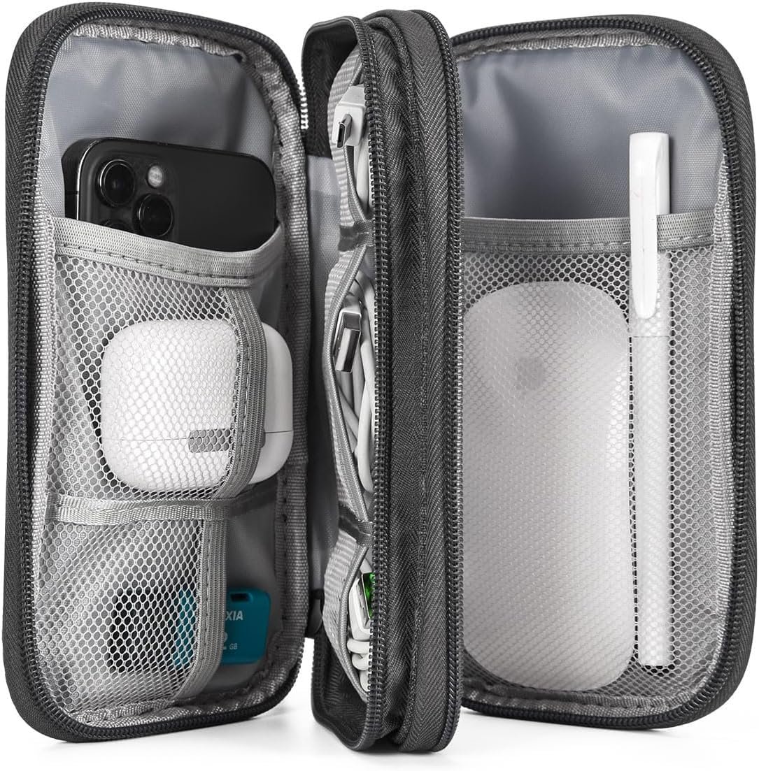 3️⃣ Double-Layer Storage Design & Reliable Quality 🗂️ Dual compartments with mesh pockets organize charging accessories, USB cables, laptop chargers, mobile accessories, SD cards, and gadgets under 500. 🔧 Strong stitching and water-resistant build make it a durable travel organiser and electronics organizer bag — perfect for utility pouch, bag organizer, and portable tech accessories storage.
