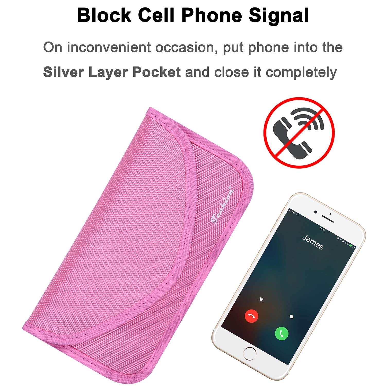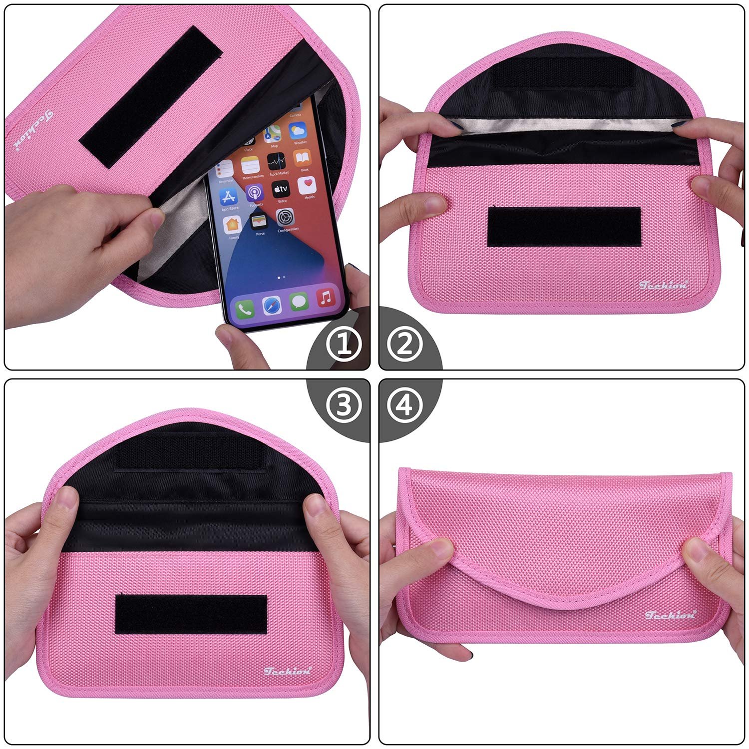 Signal Blocking Bag, Techion RFID Faraday Bag Shield Pouch Wallet Case for Cell Phone and Car Key FOB, Privacy Protection, Anti-Hacking – Pink